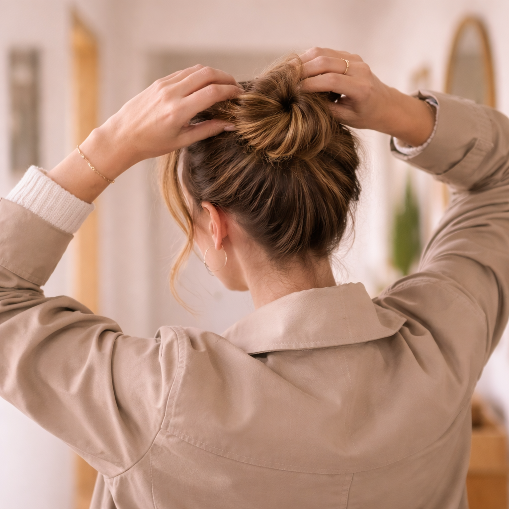 Da lì è nata l’idea di creare un accessorio semplice e veloce, che ti aiuta a fare un’acconciatura ordinata in pochi secondi, senza stress e senza fastidi.